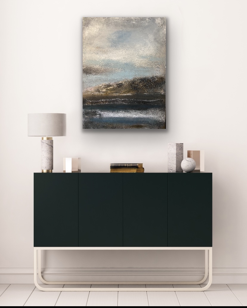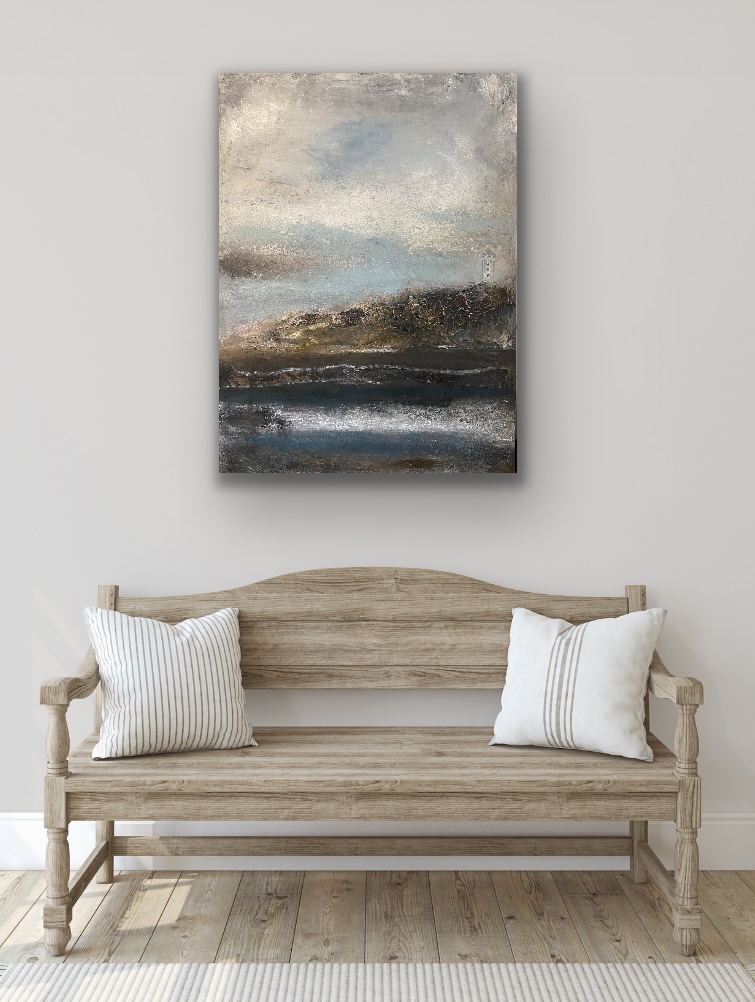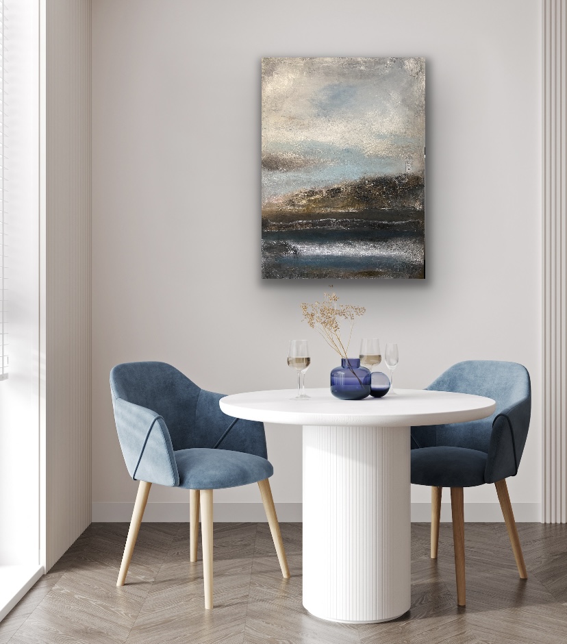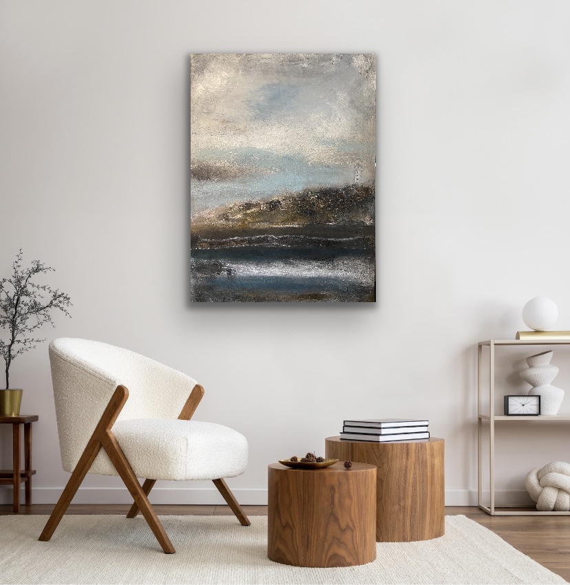 Smukt mixed Media maleri str. 100 x 100 cm.